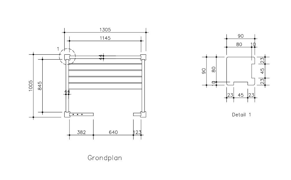 – Wandmaat binnensauna B130,6 x D100,6 cm